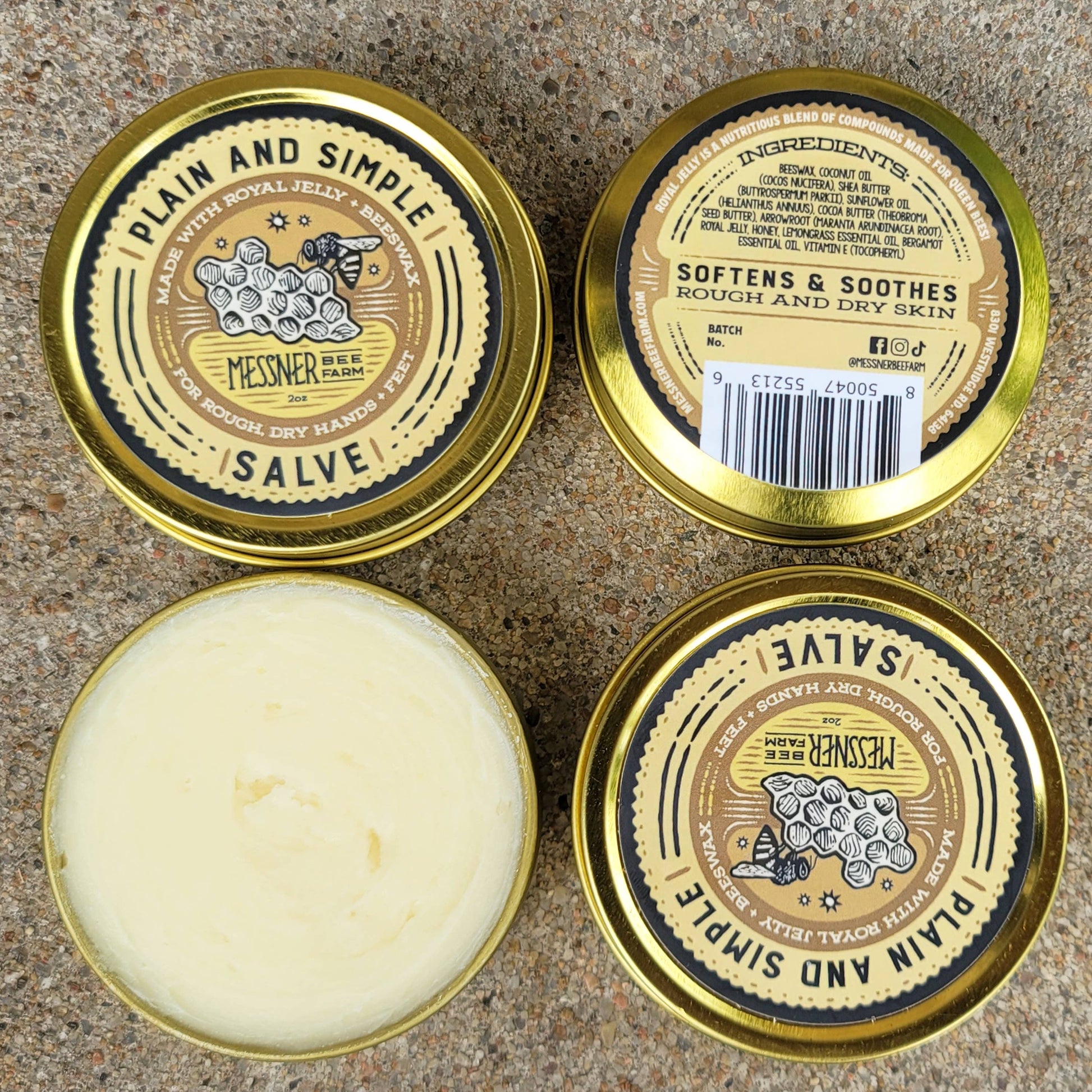 Our salve offers a rich, smooth texture ideal for moisturizing dry skin on cuticles, elbows, and feet, yet suitable for use all over the body. Renowned for its healing qualities, royal jelly has been valued across cultures for its complex nutrients including B vitamins, amino acids, fatty acids, minerals, enzymes, and natural antibiotic and antibacterial effects. Formulated with beeswax, coconut oil, shea butter, sunflower oil, cocoa butter, arrowroot, royal jelly, raw honey, and vitamin E, this salve provides comprehensive skin nourishment and protection.