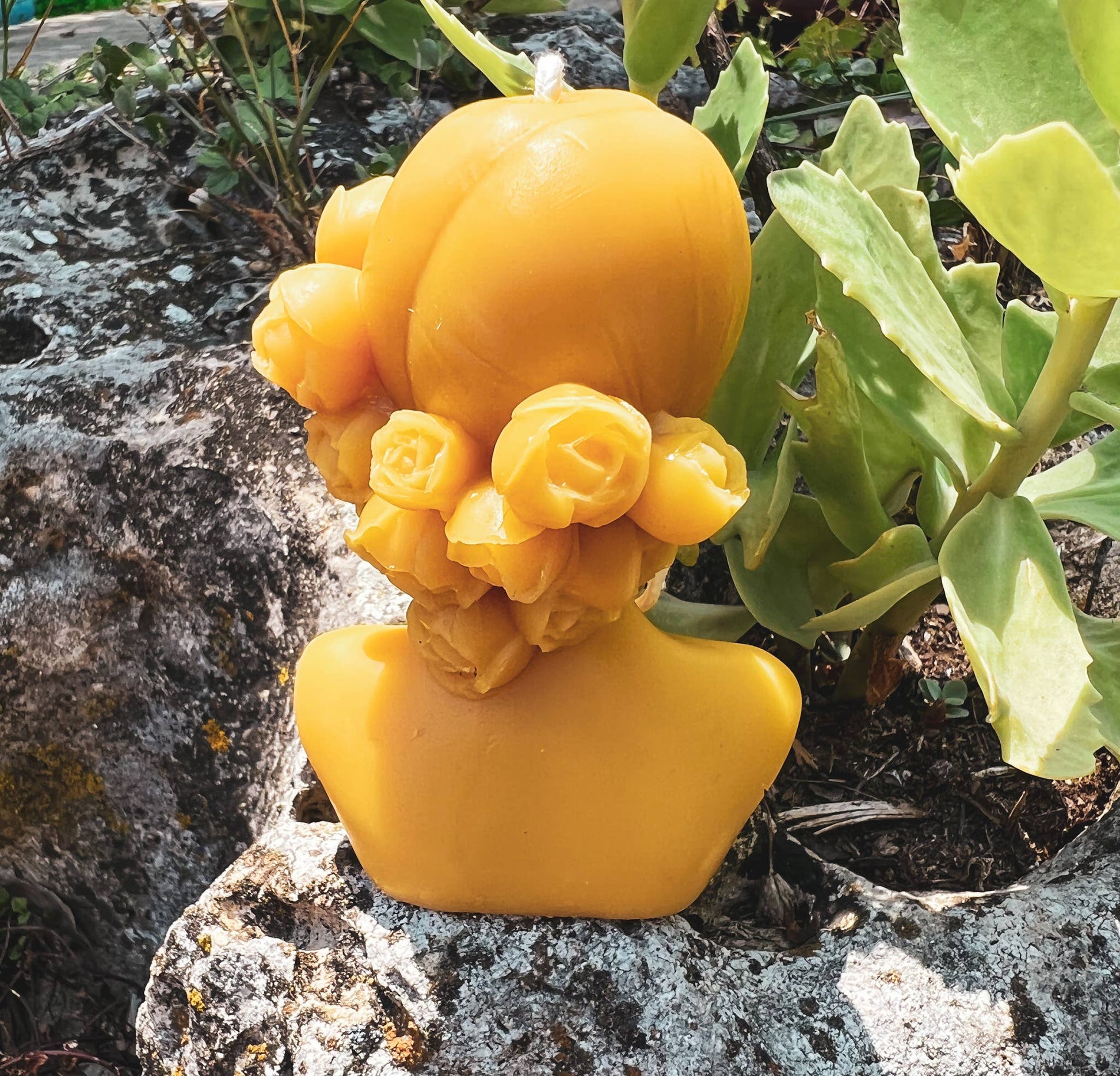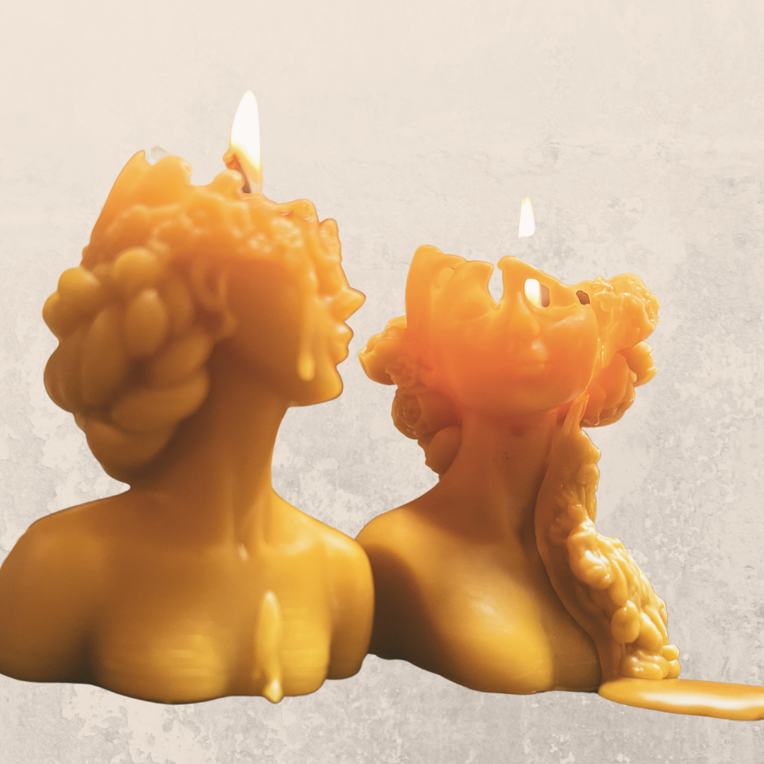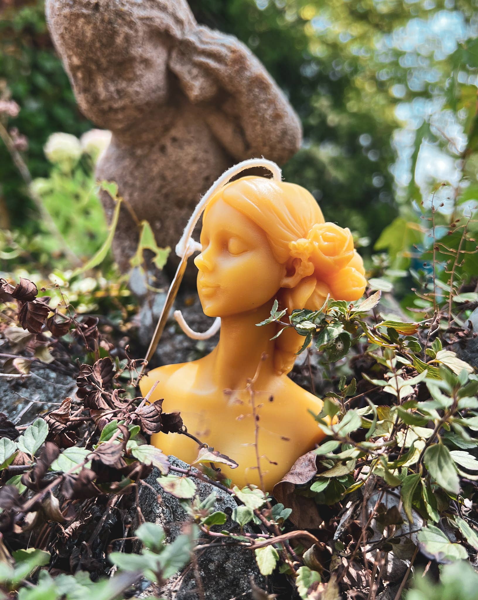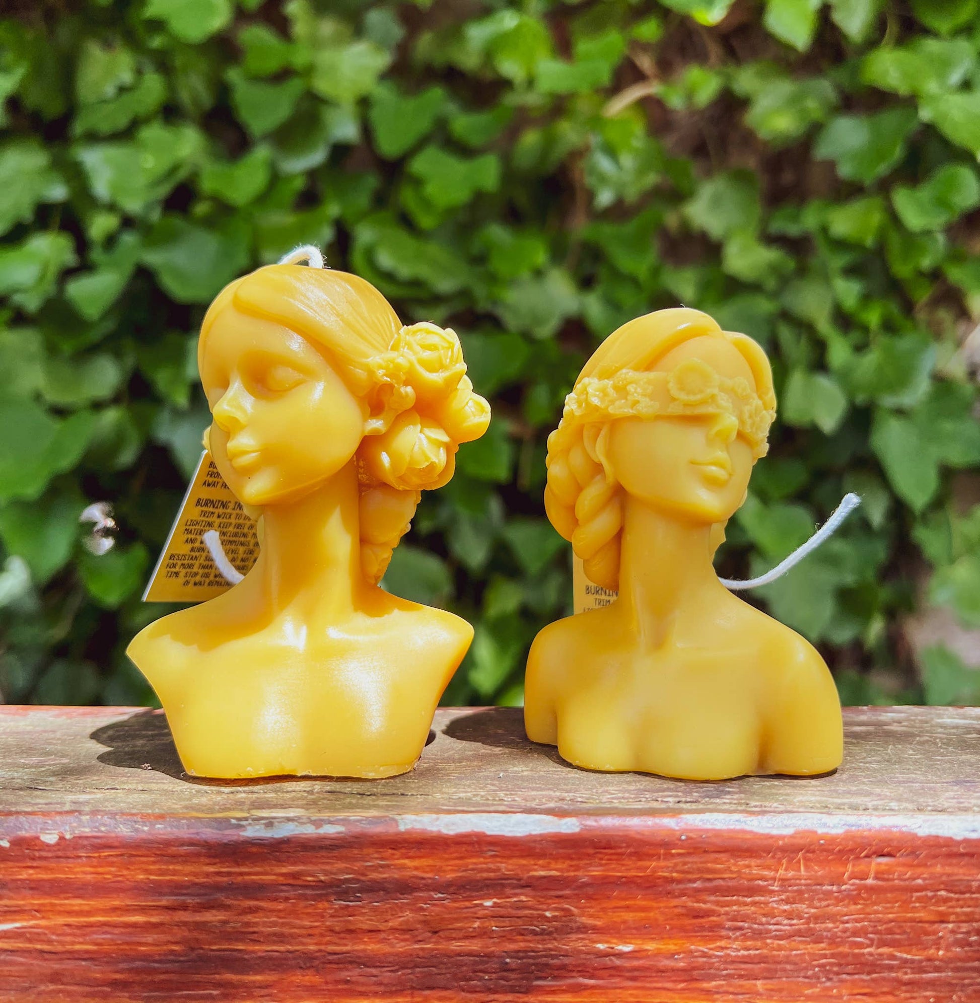 Celebrate Greek mythology with this goddess bust beeswax candle! Her hair is draped with intricate roses and her face has divine features. She would be a gorgeous addition to bedroom, bookshelf or bathroom décor.