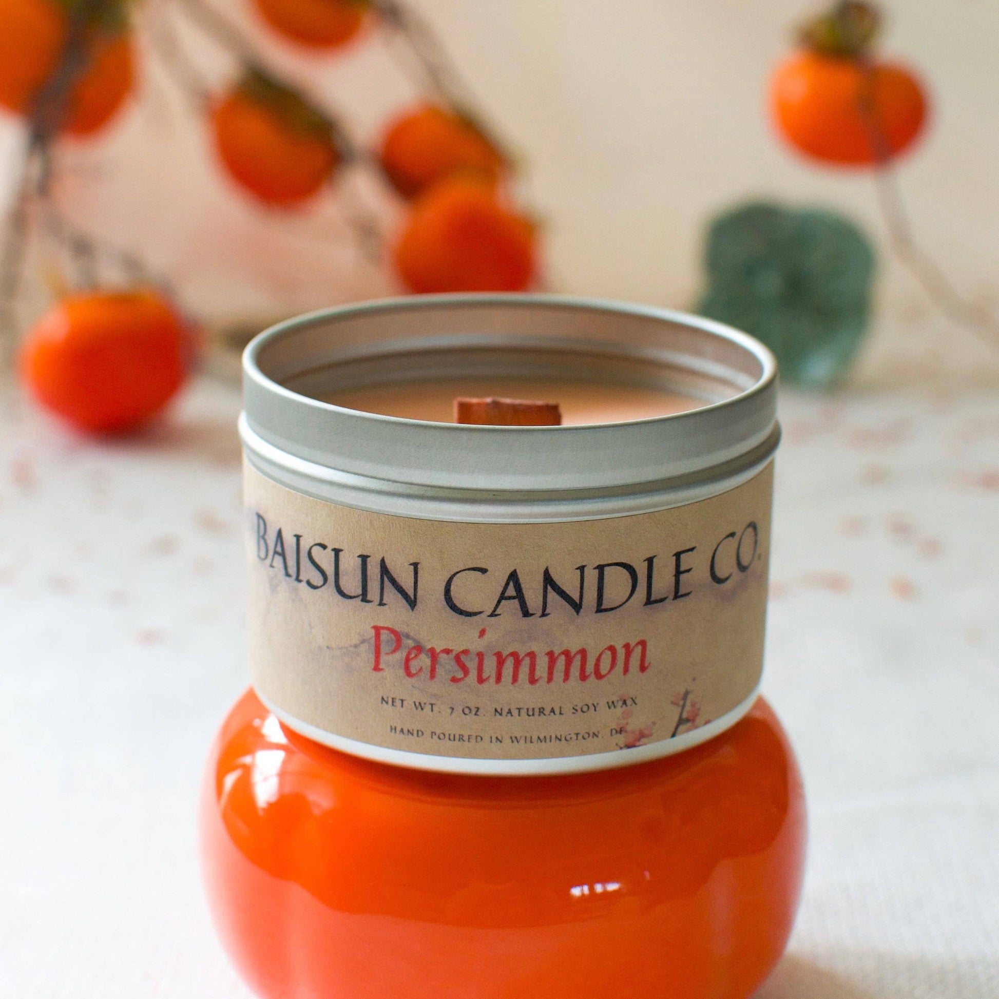 Persimmon- Scented Soy Candle: Crackling Wooden Wick